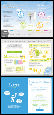 都市エネルギー総合パンフレットの改訂。従来のサービスの列挙ではなく、多様なニーズに、最適な方法で応えられる事を伝えたいとの要望。プレゼンの結果、弊社が受注。様々なサービスを分かりやすく伝えることに主題を置き、編集コンセプトを明確に策定し、訴求力を高めた。